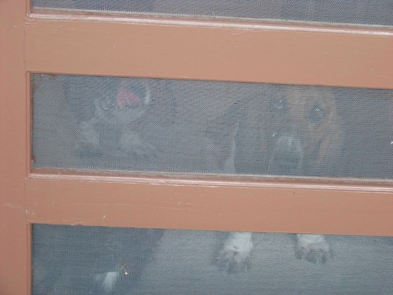 Mr. Man enjoyed watching the machinery from the work site next door. Wish this little guest house had a glass door so I could leave the wood one open and he could watch the activity all day. He is able to catch some action from a side window. Poor tortured soul.